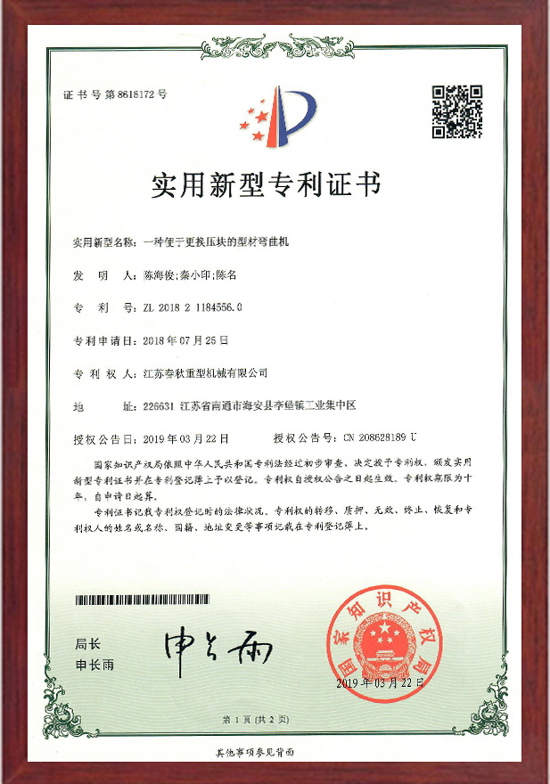 一種便于更換壓塊的型材彎曲機專利